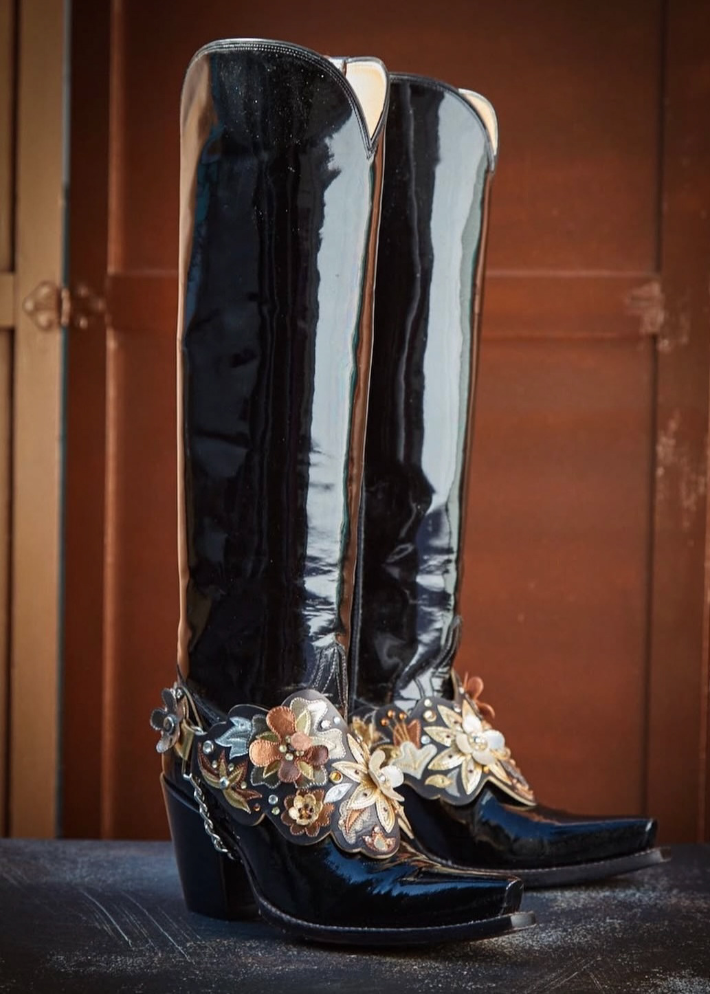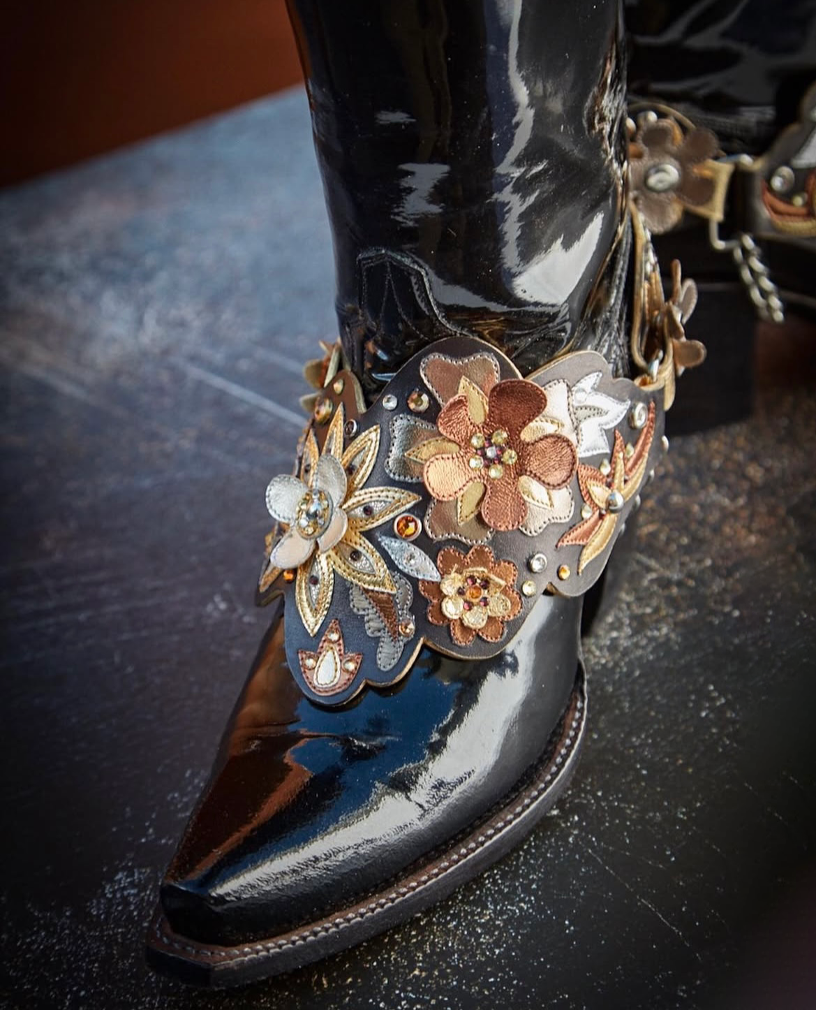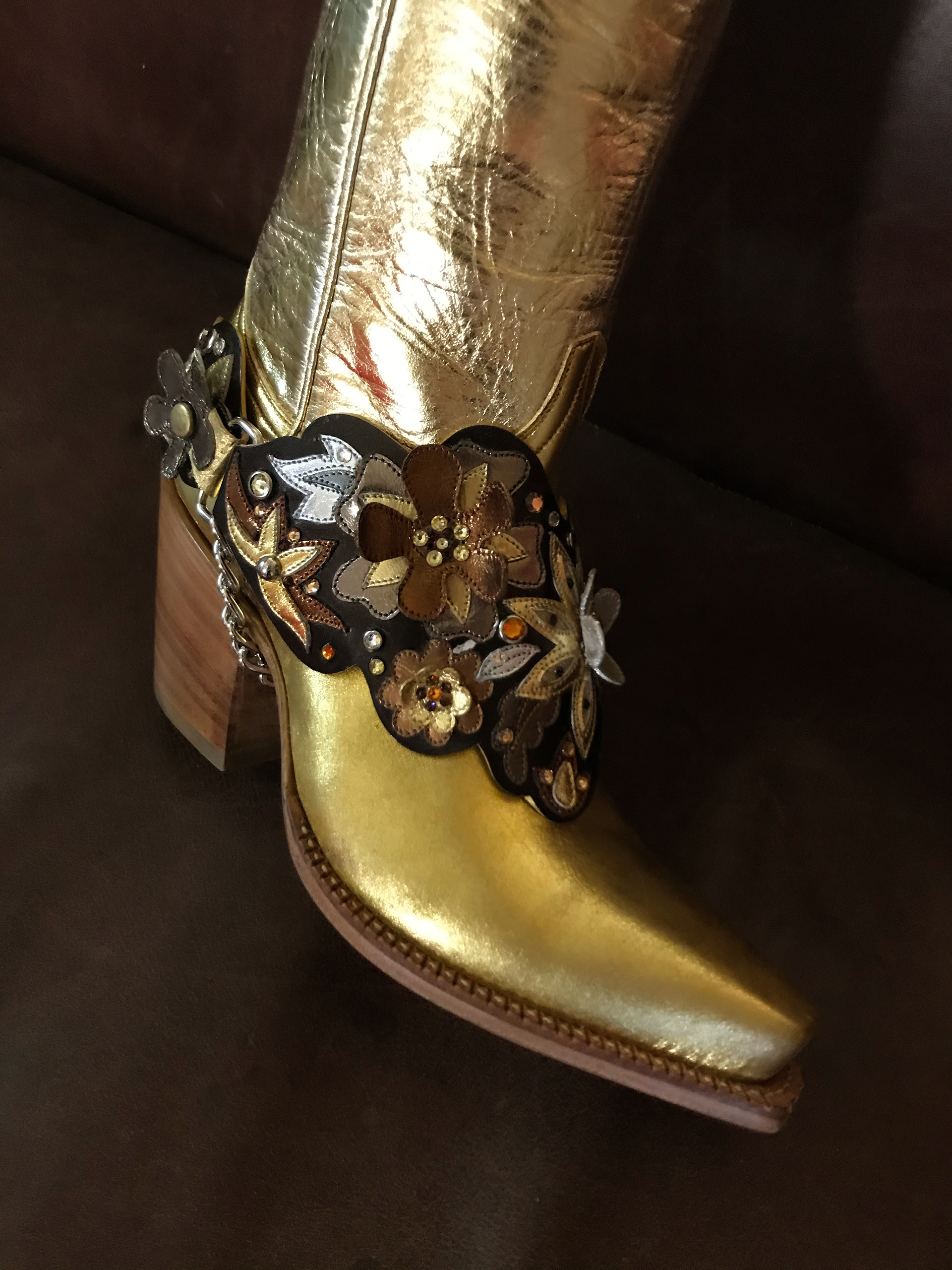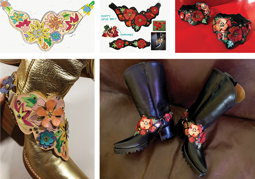 I developed the Spur Belt: a strap that serves as an ornate accessory for your boot. It allowed interchangeability with a fixed style. It was featured in a Cowboys and Indians photoshoot, and like all things Rocketbuster, custom versions were created for clients.