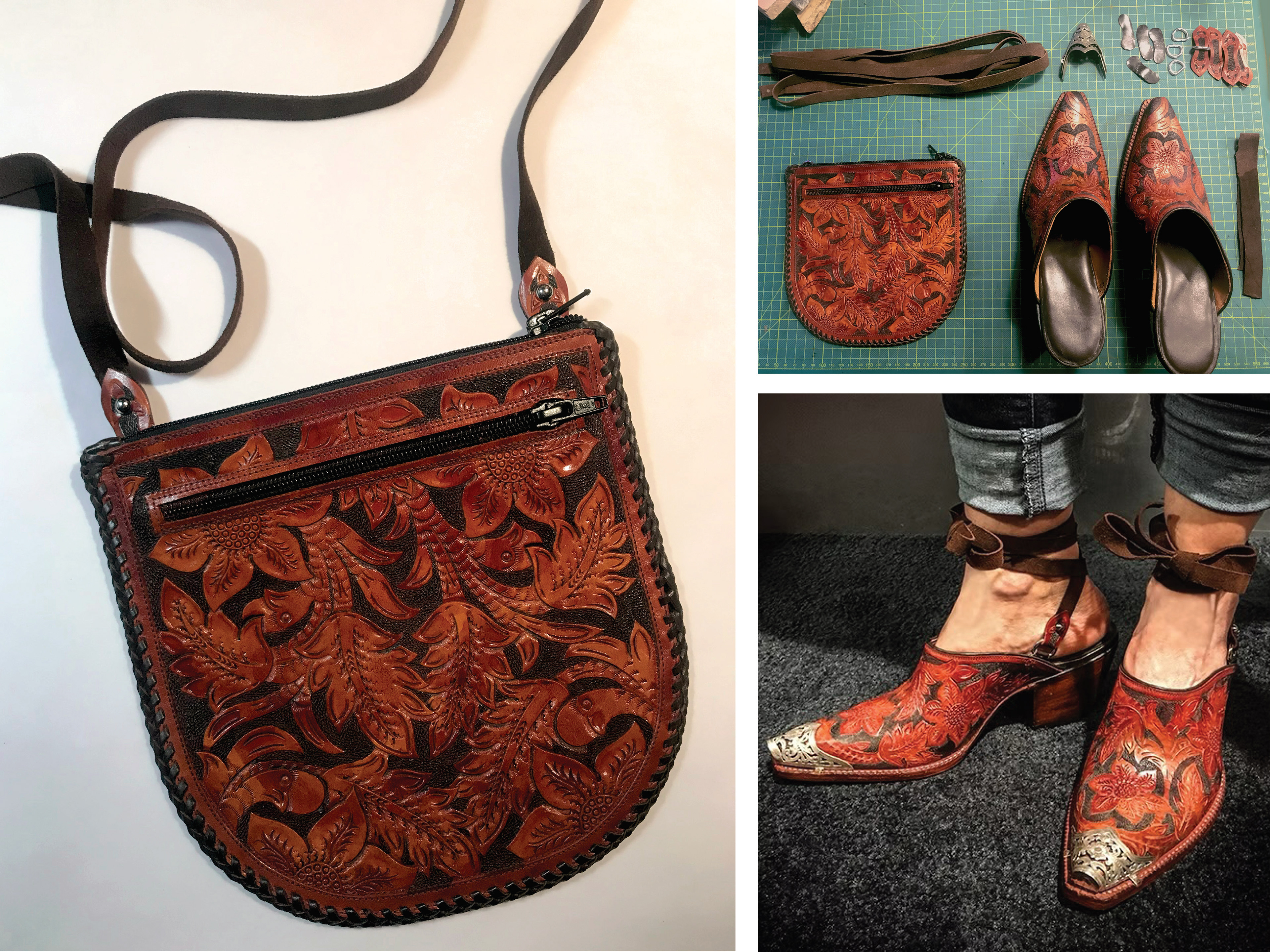 Created as a set and a revamp of the popular Winchester tall top, the tooled shoulder bag shared several details to compliment its strapped counterpart.